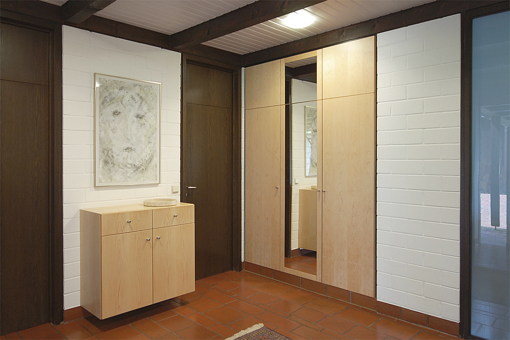 Entwurf und Realisierung der Einbaumöbel für den Eingangs- und Garderobenbereich eines Privathauses.